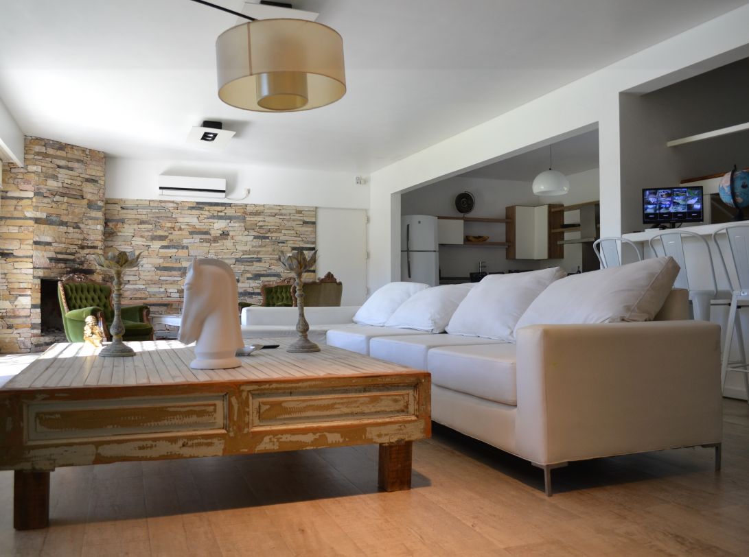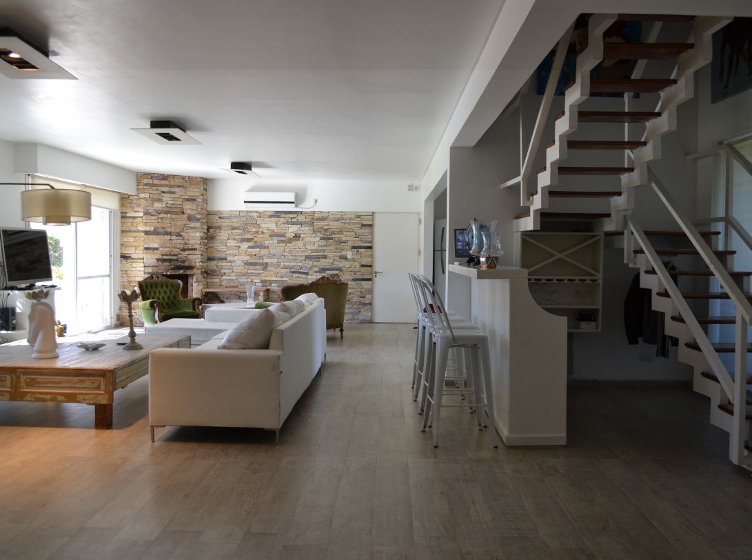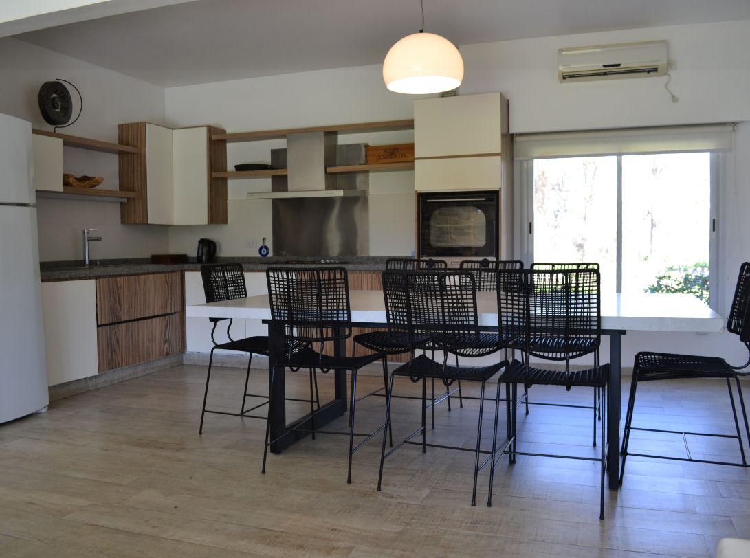 Amplio living comedor, cocina integrados con luminosidad natural y vistas al jardín